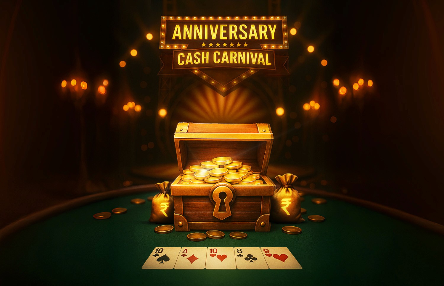 A Splash Screen appears when an application or website is launched. It highlights the latest brand campaign, promotional event, or live tournament—for example GOAT, NPS, Anniversary Cash Carnival, WPT, and more.